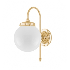 Lampett med hvit rund kuppel, jugend. Arm i polert messing.