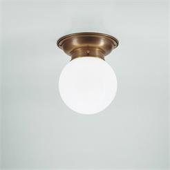 Sokkel i patinert messing, kuppel i 3 lages opalglass. Kuppel er 15cm i diameter.