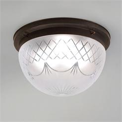 Lampen er 40cm i diameter, kuppel i frostet glass m/skjærslipt stjernemønster, sokkel i antikkbehandlet messing.