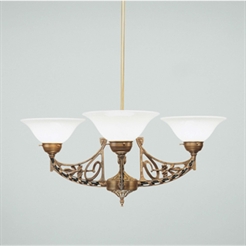 3-armet taklampe i patinert messing.