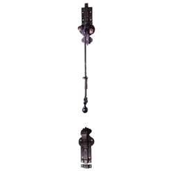 Skåter i smijern til høye doble dører. Den ene skåten låser døren oppe, den andre låser døren nede. Siden døren er høy, er det en hjelpestang for å styre den øverste skåten.