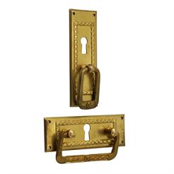 Jugendstil. Skapbeslag 27 x 79 mm, Skuffbeslag 27 x 79 mm. Nøkkelhullets høyde er 15mm