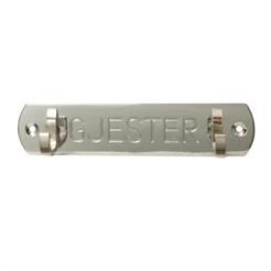 Knaggrekke med tekst " Gjester " ble satt i produksjon av et norsk firma på 1950-tallet, og er fortsatt i produksjon hos samme firma. Forniklet.